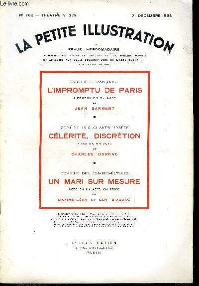 La petite illustration - nouvelle série n° 752 - théatre n° 379 - L'impromptu de Paris, a-propos en un acte par Jean Sarment, Célébrité, discrétion, pièce en un acte par Charles Dornac, Un mari sur mesure, comédie en un acte, en prose par Maxime-Léry