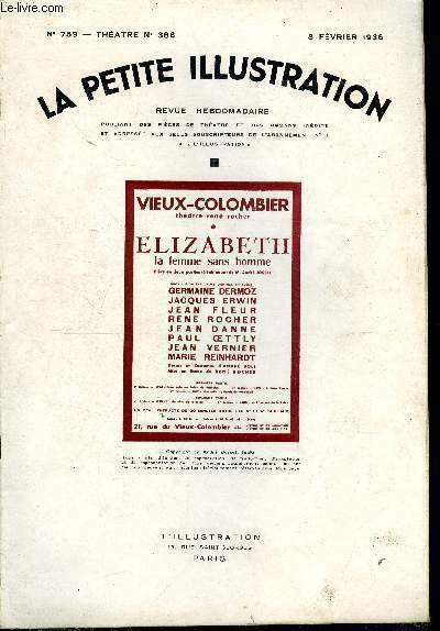 La petite illustration - nouvelle série n° 759 - théatre n° 386 - Elizabeth, la femme sans homme, pièce en deux parties et cinq tableaux par André Josset, représentée pour la première fois le 19 octobre 1935 au théatre du vieux colombier