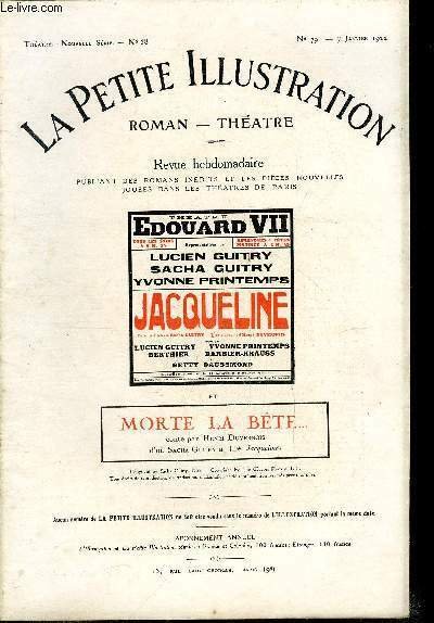 La petite illustration - nouvelle série n° 79 - théatre n° 58 - Morte la bête par Henri Duvernois, Jacqueline, pièce en trois actes, tirée de la nouvelle de Henri Duvernois par Sacha Guitry, représentée pour la première fois le 5 novembre 1921 au théatre