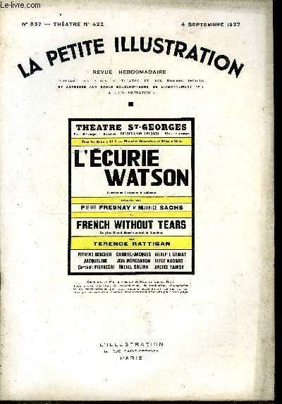 La petite illustration - nouvelle série n° 837 - théatre n° 422 - L'écurie Watson, comédie en trois actes et cinq tableaux par Terence Rattigan, adaptée par Pierre Fresnay et Maurice Sachs, représentée pour la première fois le 9 juillet 1937 au théatre