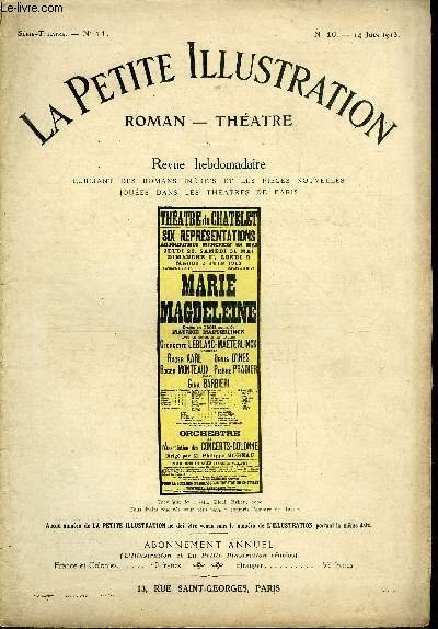 La petite illustration n° 16 série théatre n° 11 - Marie-Magdeleine, pièce en trois actes par Maurice Maeterlinck, représentée pour la première fois le 18 mars 1913 au théatre du Casino municipal de Nice et reprise au théatre du Chatelet a Paris le 28 mai