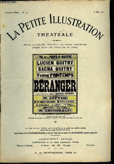 La petite illustration théatrale - nouvelle série n° 17 - Béranger, comédie en trois actes et un prologue par Sacha Guitry, représentée pour la première fois sur la scène du théatre de la porte saint martin, le 21 janvier 1920
