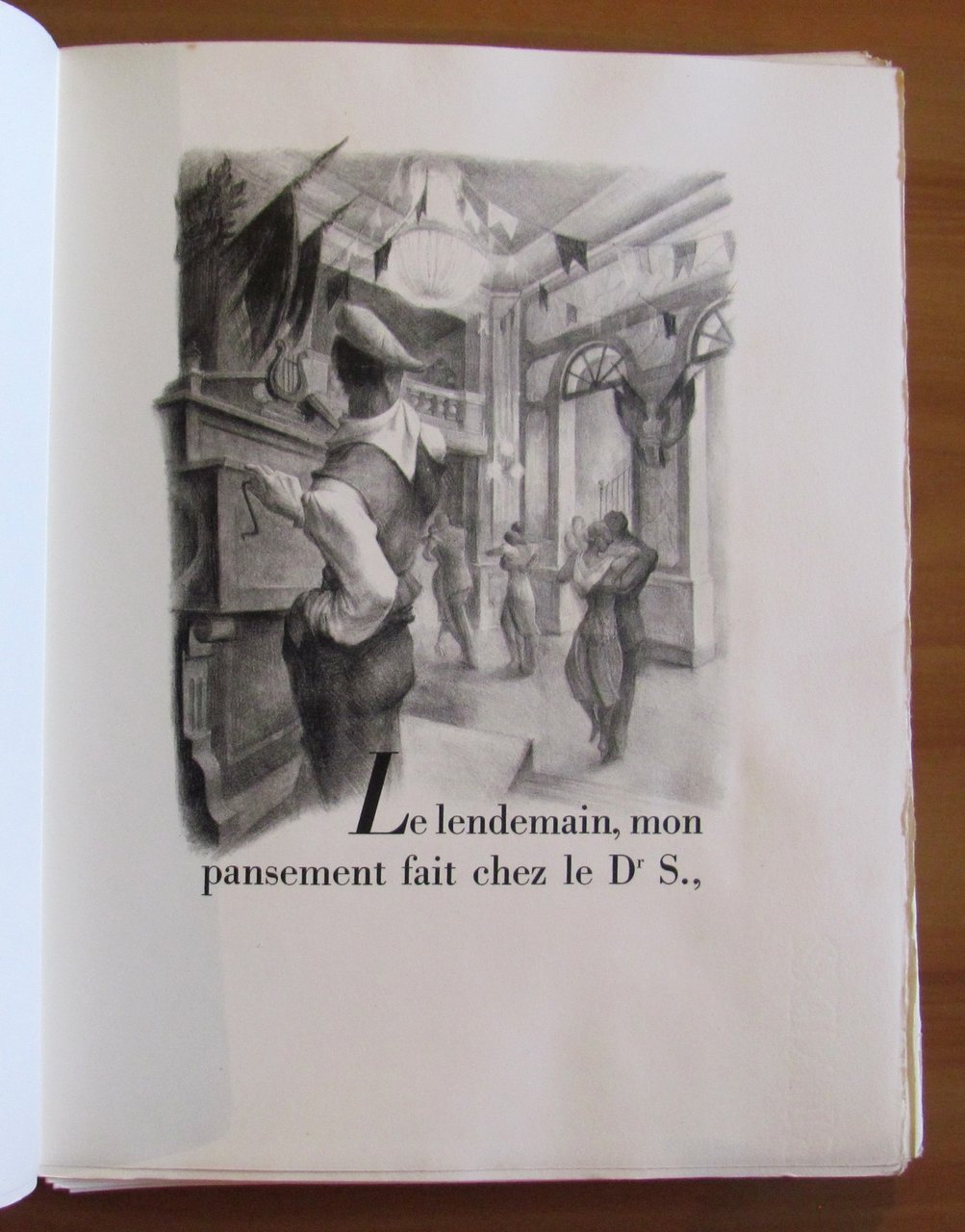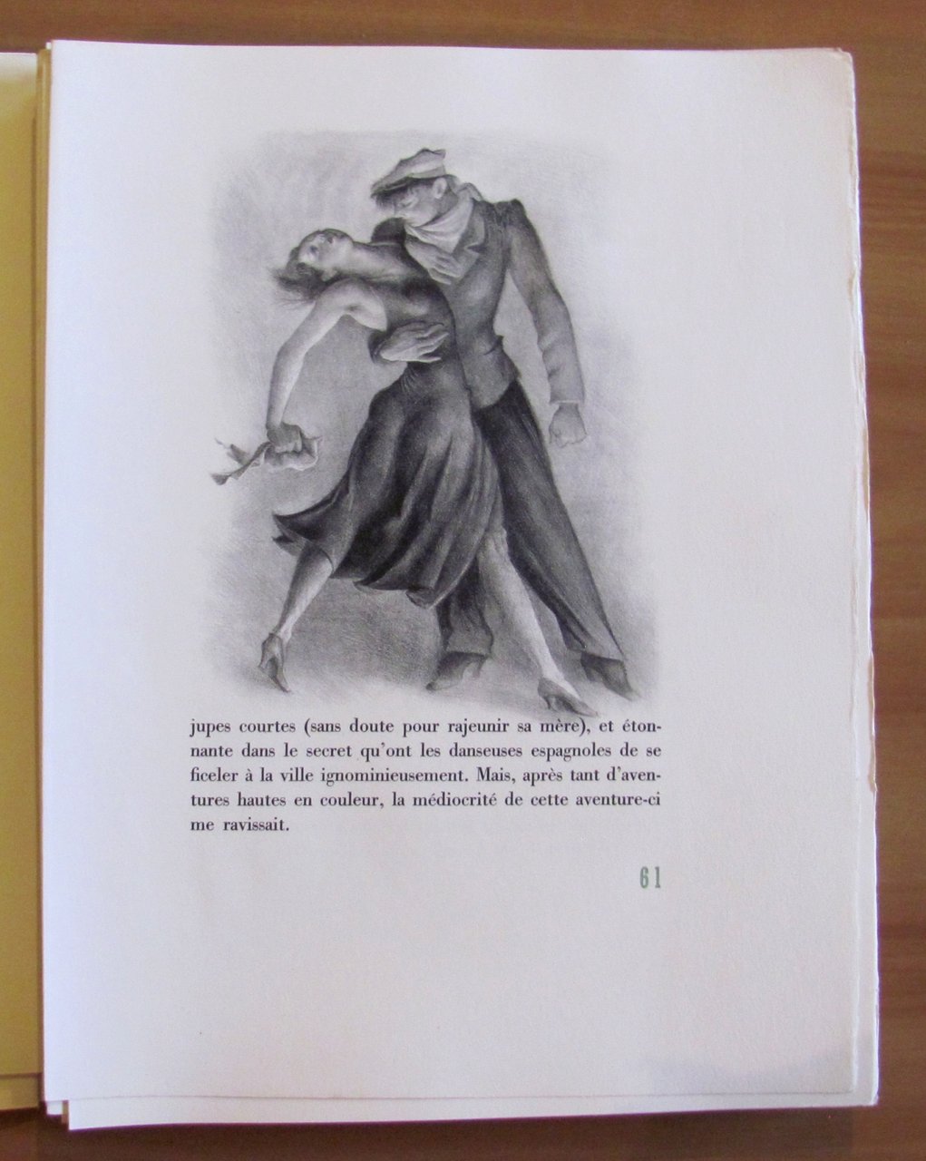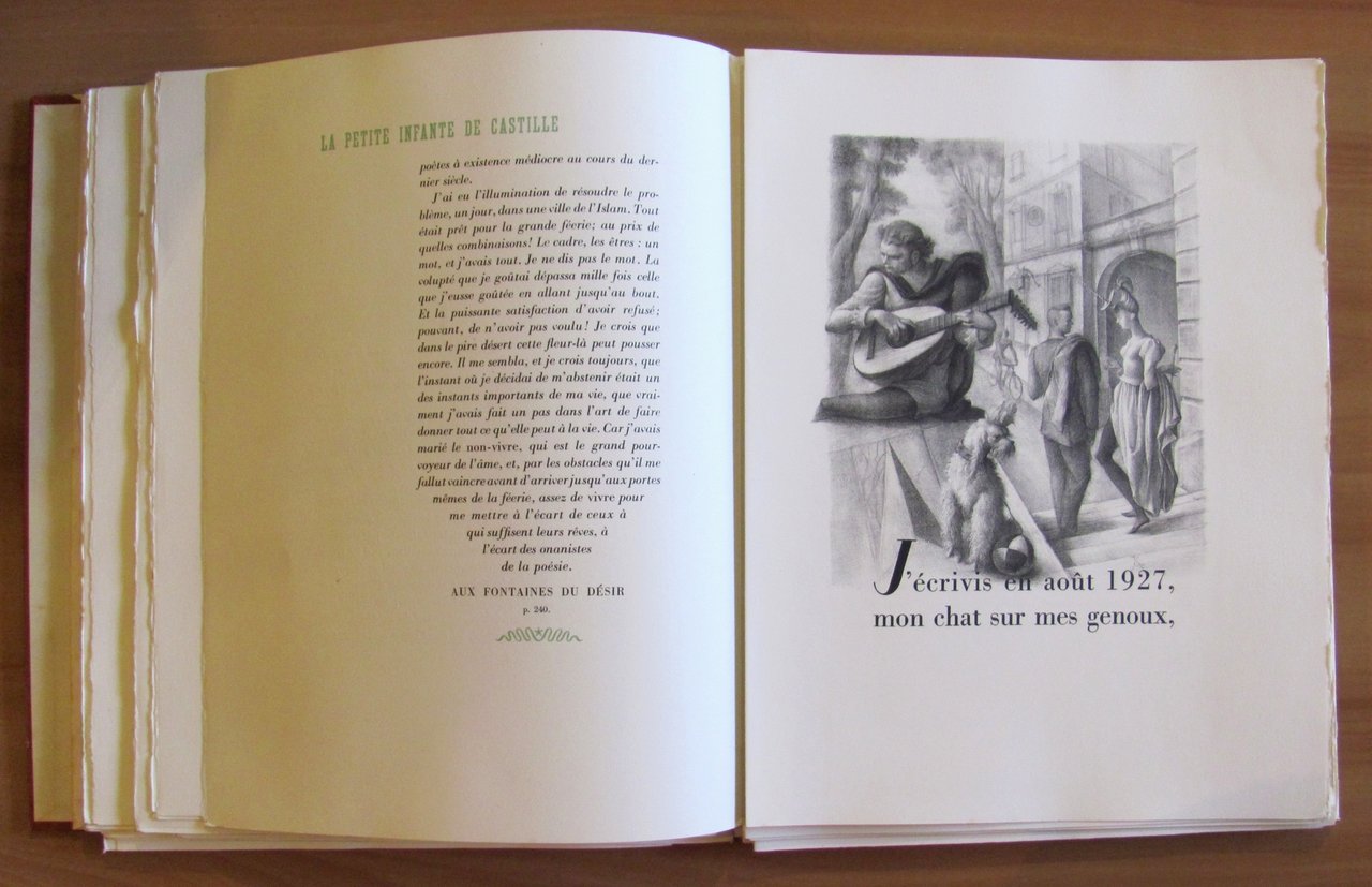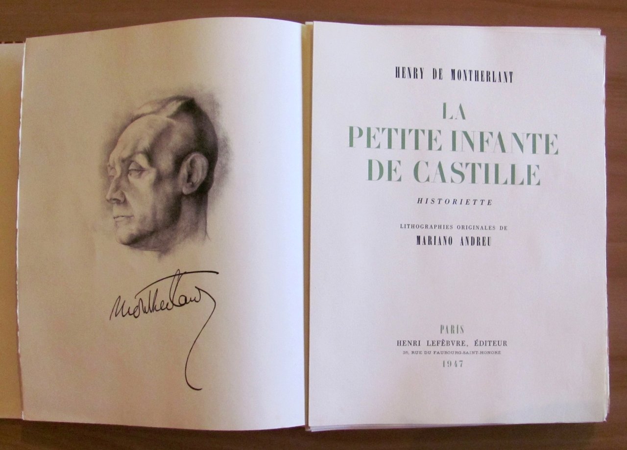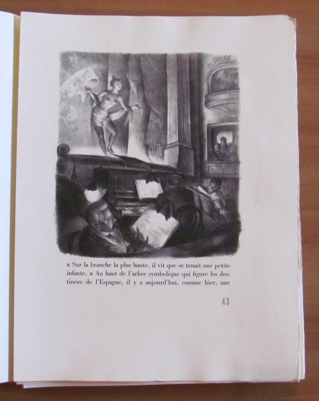 Ritratto dell'autore in antiporta f.t., 19 splendide litografie in b/n a piena pagina e una in b/n f.t. di Mariano Andreu. Editore Henri Lefebvre - Paris, 1947. Edizione in Tiratura Limitata a 500 esemplari numerati, nostro N.318. Cofanetto editoriale decorato contenente cartella editoriale, ugualmente decorata con tassello con titoli al dorso, e ulteriore copertina sciolta con ali, con titoli e fregio in b/n al piatto, contenente l'opera realizzata in quinterni sciolti. 26,5x33,5; pp.183. Raro e in Ottimo stato. , Ottimo (Fine)