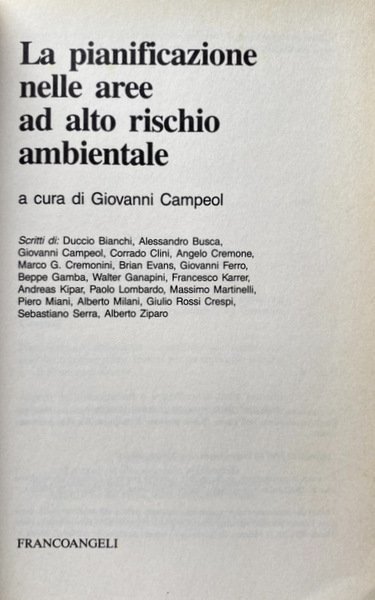 LA PIANIFICAZIONE NELLE AREE AD ALTO RISCHIO AMBIENTALE. A CURA DI GIOVANNI CAMPEOL