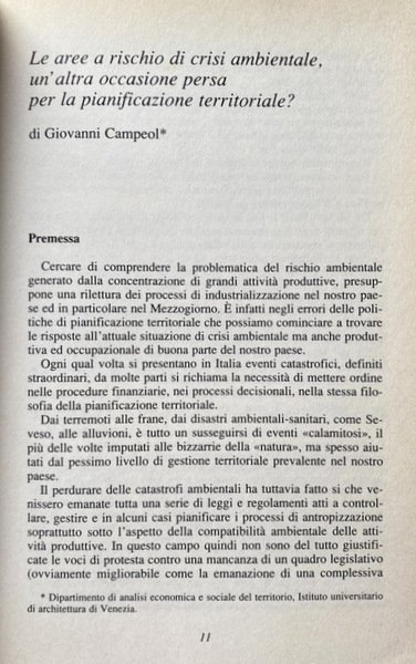 Le aree a rischio di crisi ambientale, un'altra occasione persa per la pianificazione territoriale?, di Giovanni Campeol