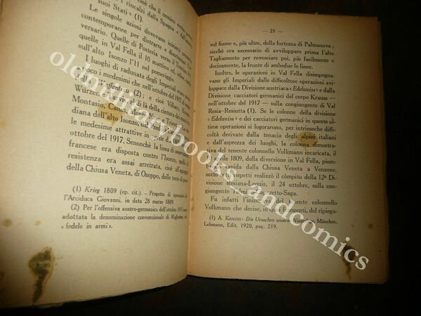 DESCRIZIONE: Stabilimento Polig. per l'Amministrazione della Guerra Roma 1923, br. ed., pp. 109 con due carte b/n di cui rip. n.t. in 16°. CONDIZIONI: Accettabili/Buone danni al dorso e due pp. con vistosa macchia. PESO / WEIGHT: 200 gr. without package