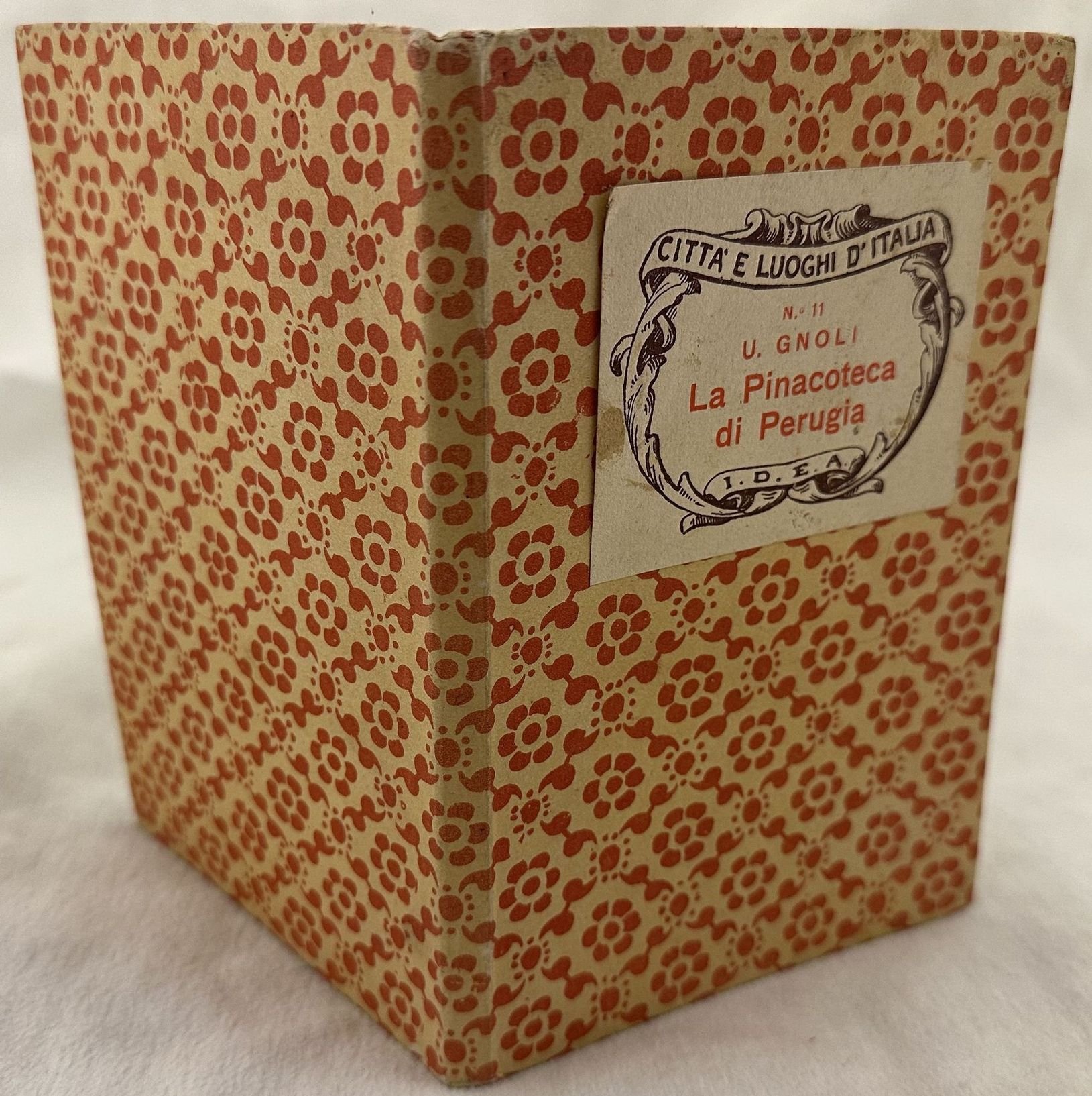 Edizione degli anni '30 di questa guida alla Pinacoteca di Perugia scritto da Umberto Gnoli della collana "Città e luoghi d'Italia n. 11". All'interno 56 tavole in bianco e nero e lista delle opere presenti nelle sale. In buone condizioni. Copertina editoriale con etichetta al piatto anteriore in ottime condizioni con lievi usure ai margini e dorso. Legatura in buone condizioni. Pagine in buone condizioni con rare fioriture. In 16. cm. 17,5x11,5. Pp. 20+56 pl.Edition of 1930's of this guide to the Pinacoteca of Perugia written by Umberto Gnoli of the series "Città e luoghi d'Italia n. 11". Inside 56 black and white plates and list of the works in the rooms. In good conditions Editorial cover with label in the front plate in very good conditions lightly worn in the extremities. Binding in good conditions. Pages in good conditions with occasional foxing. In 16. cm. 17,5x11,5. Pp. 20+56 pl.<BR><BR>