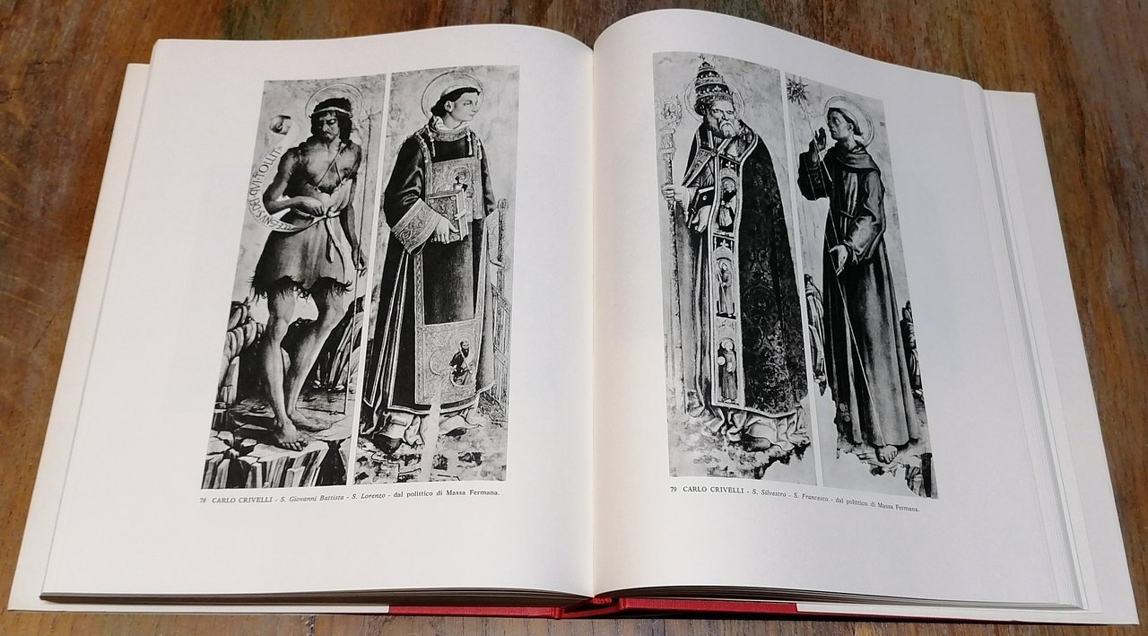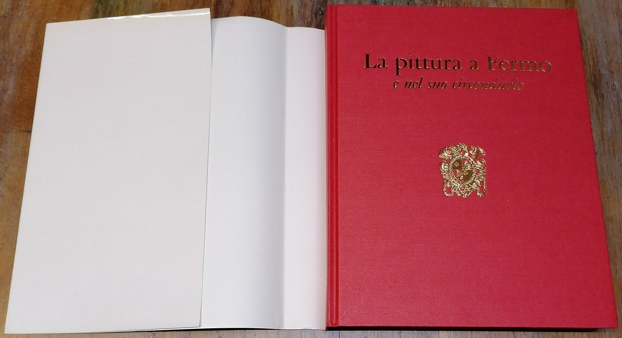 (Arte - Pittura - Regione Marche - Territorio Fermano) In 4°, legatura editoriale in piena tela rossa con titoli dorati al dorso, titoli e stemma della città di Fermo impressi in oro al piatto anteriore, sovraccoperta illustrata a colori, guardie figurate con antica mappa del Fermano, pp. XX,481,(3), con 105 tavole a colori e 150 in bianco e nero su carta patinata nel testo. Catalogo critico a cura di Luigi Dania. Illustrazioni fotografiche di Bruno Simoncelli e Ettore Tavoletti. Introduzione storica del prof. Alvaro Valentini. La data di stampa riportata al colophon è il 25 febbraio 1968. Ottimo stato di conservazione.