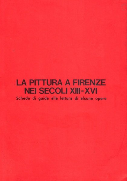Singolare volume di stampo didattico sulla pittura fiorentina dal XIII al XVI secolo, il testo, stampato in stile ciclostile, fa riferimento alle immagini in esso contenute con brevi spiegazioni e domande alle quali rispondere su righe tratteggiate.