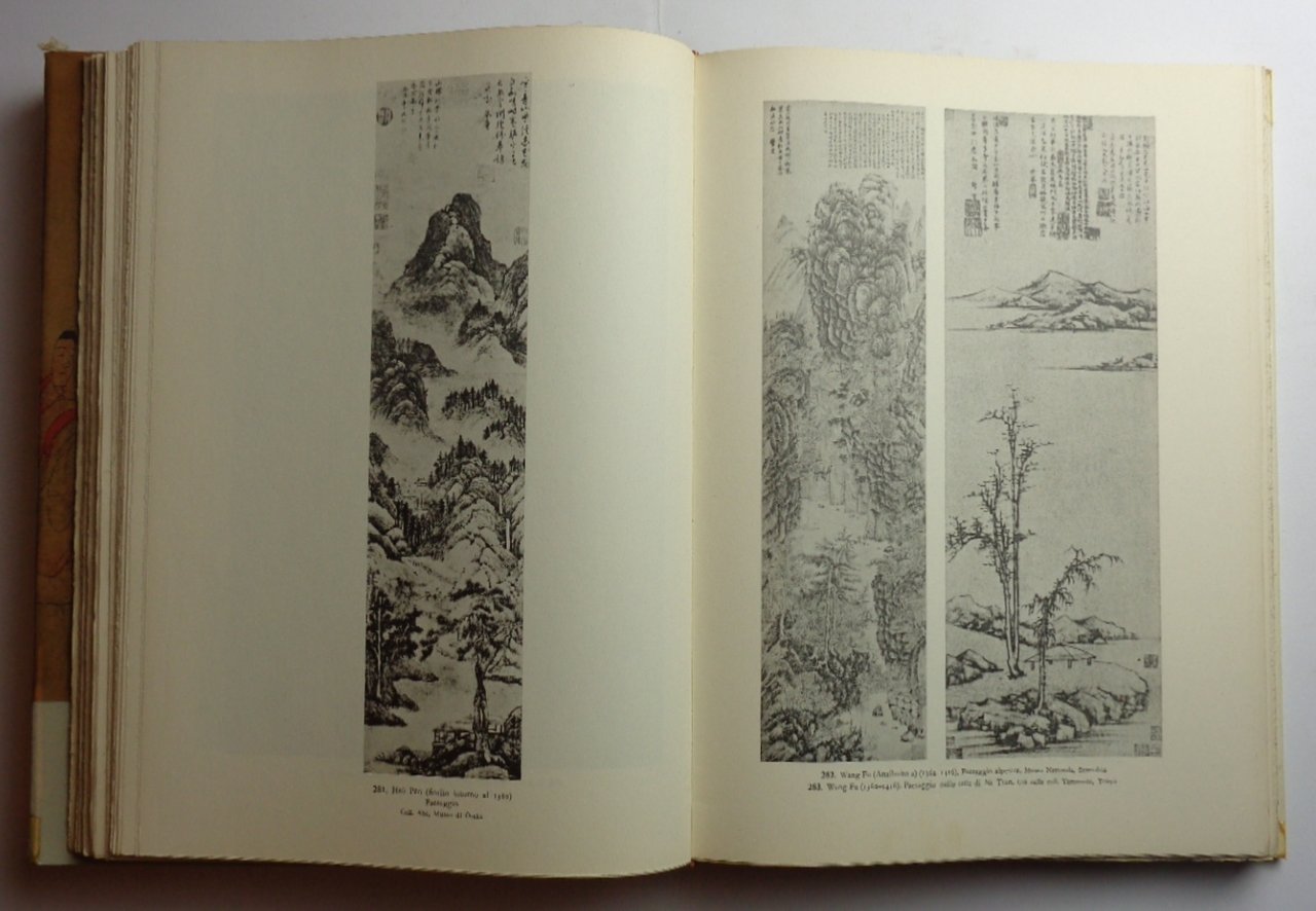 Due volumi (26x36 cm) di XII-344 pagine per il volume di testo e 592 illustrazioni per il volume di tavole. Edizione numerata di 750 esemplari (questo è in n. 220) stampata su carta a mano della cartiera Ventura. Legatura editoriale in tutta tela con sovracoperta illustrata. Strappi riparati (grossolanamente) alla sovracoperta del primo volume, peraltro ottime condizioni. L'opera di riferimento per gli studi sulla pittura cinese.