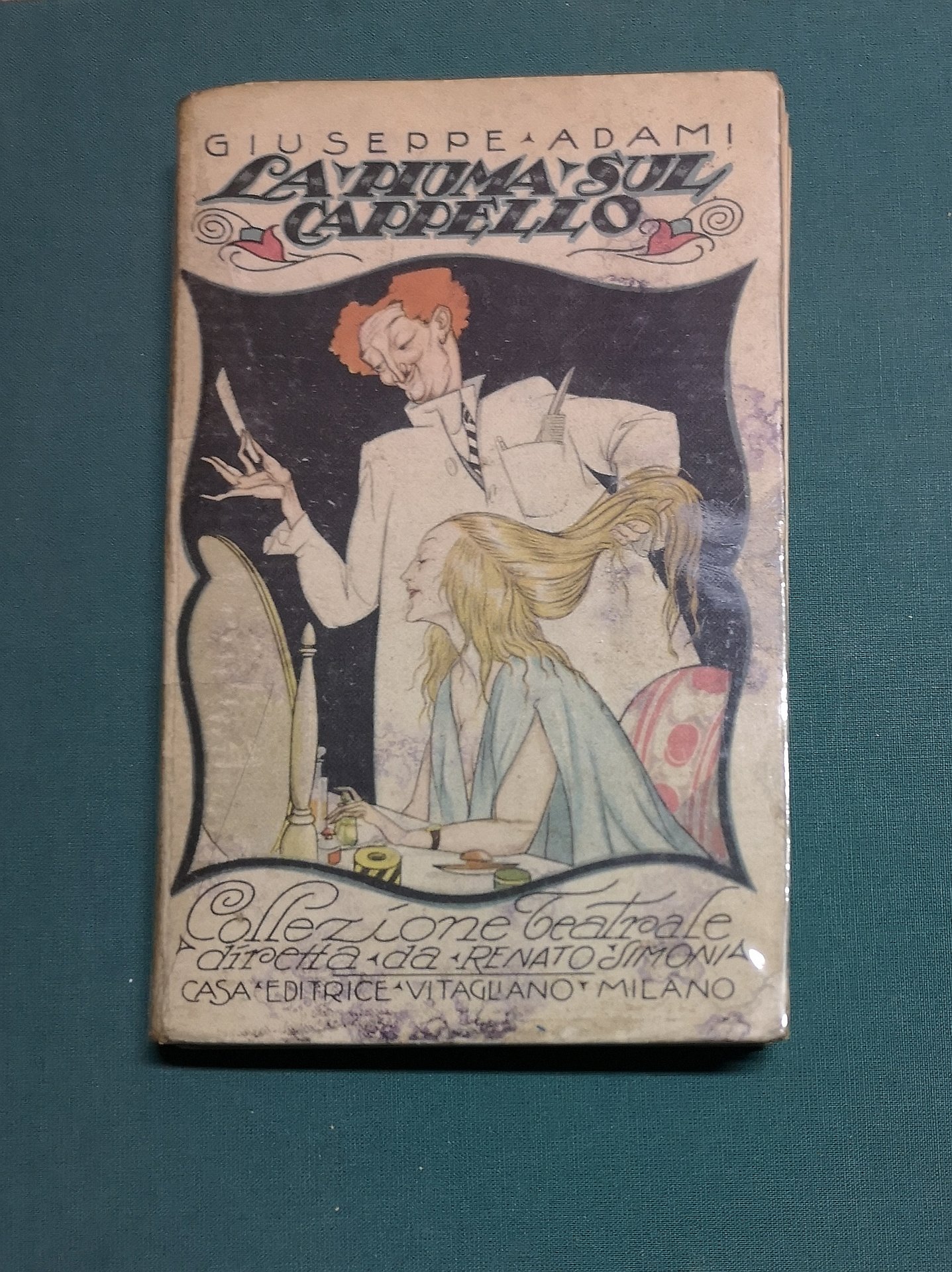 >in-16, pp. 252, (4), bella brossura editoriale a colori realizzata da Ventura raffigurante un barbiere al lavoro (dorso staccato). Edizione originale. Comprende anche: La leggenda Valacca - Pierrot innamorato - Gli Orazi e i Pancrazi. Fa parte della ''Coll.ne teatrale diretta da R. Simonia''. Nel complesso buon esemplare.