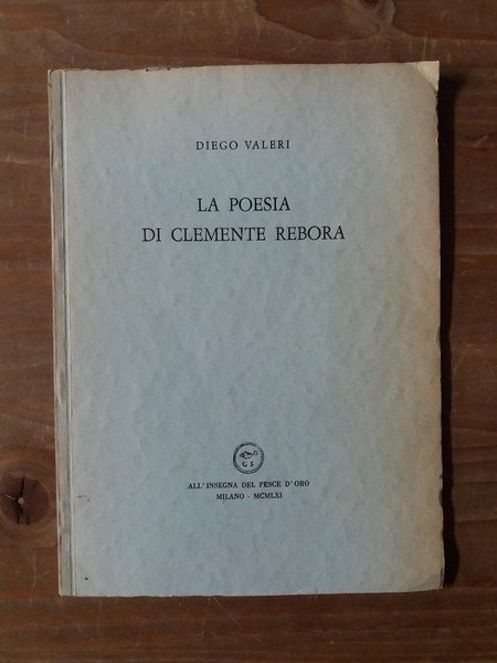 Brossura, cm. 21,5 x 15,8, pp.28. Estratto dal Quaderno Reboriano 1960. Conferenza tenuta a Milano il 14 aprile 1959. Edizione di 500 copie numerate (n.173). Firma di appartenenza e data.