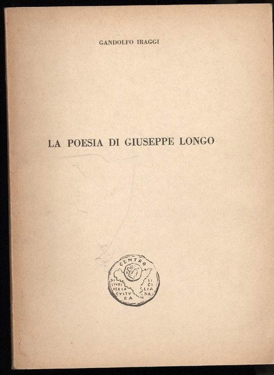 In 8', br.ed. pp. 79+ appendice bibliografica; interno in buono stato ordinari segni del tempo, bruniture ai piatti e al dorso, segni a matita al piatto ant.Estratto dal volume "Giuseppe Longo" del Centro Studi per la Cultura Sicilian-Quaderno n. 3 Dedica autografa al frontespizio. ***Due to bureaucratic reasons, books dated over 70 years old cannot be immediately exported, please contact us before placing the order.***