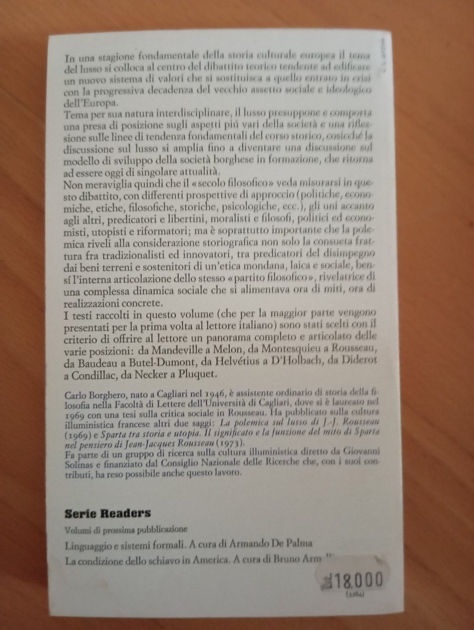 La polemica sul lusso nel Settecento francese, Carlo Borghero, Einaudi, 1974