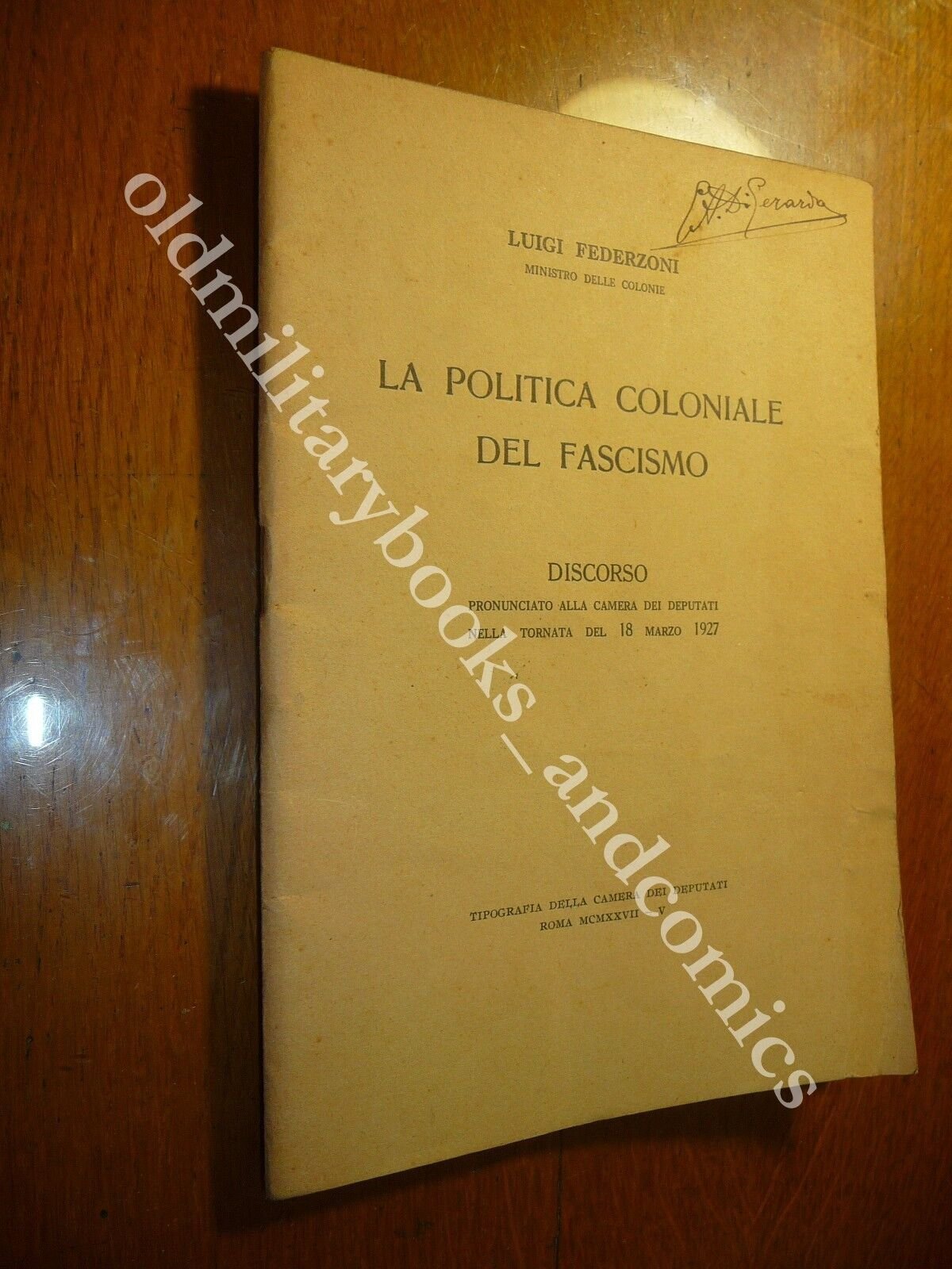 LA POLITICA COLONIALE DEL FASCISMO LUIGI FEDERZONI DISCORSO ALLA CAMERA 1927