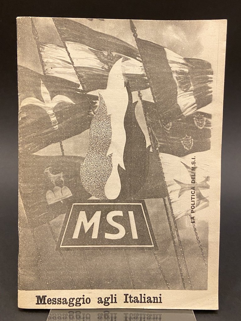 Opuscolo di propaganda politica del Movimento Sociale Italiano, spillato cm 20x14, pp 48 incluse copertine.