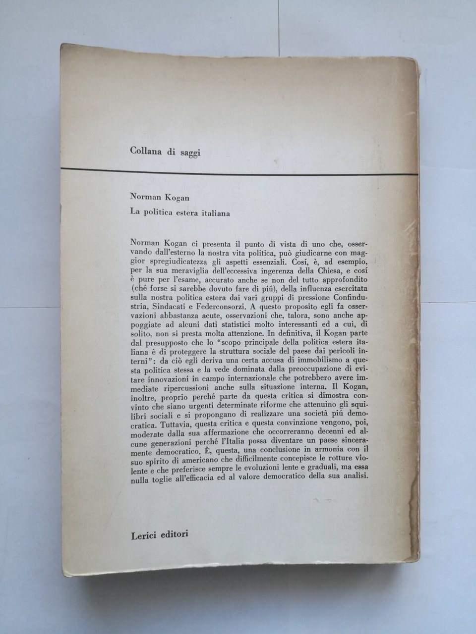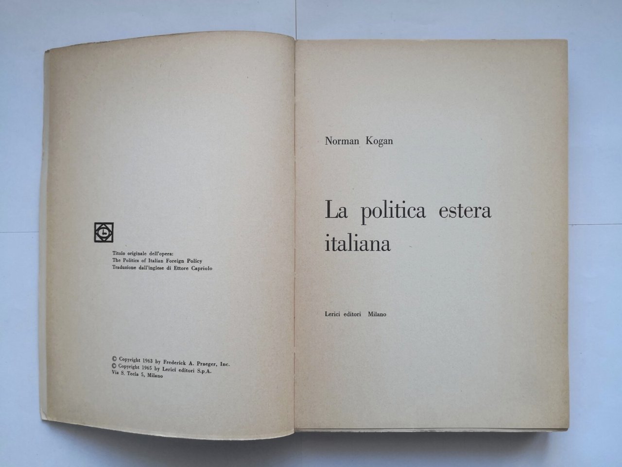 LA POLITICA ESTERA ITALIANA di Norman Kogan 1965 Lerici Editori libro scritto da