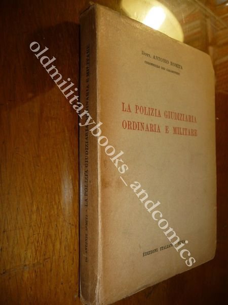 DESCRIZIONE: Ed. Italiane Roma, 1947 I^ Ed. br. ed. con alette pp. 386 in 16°. Manuale completamente aggiornato ad uso: degli ufficiali e degli agenti della polizia giudiziaria; degli ufficiali e degli agenti della forza pubblica; dei comandanti di corpo, di distaccamento e di posto delle forze armate (e qualifiche corrispondenti); dei privati (organi occasionali di polizia giudiziaria). CONDIZIONI DELL'OGGETTO: Buone, dedica dell'Autore alla prima bianca. PESO/WEIGHT: 272 gr. without package