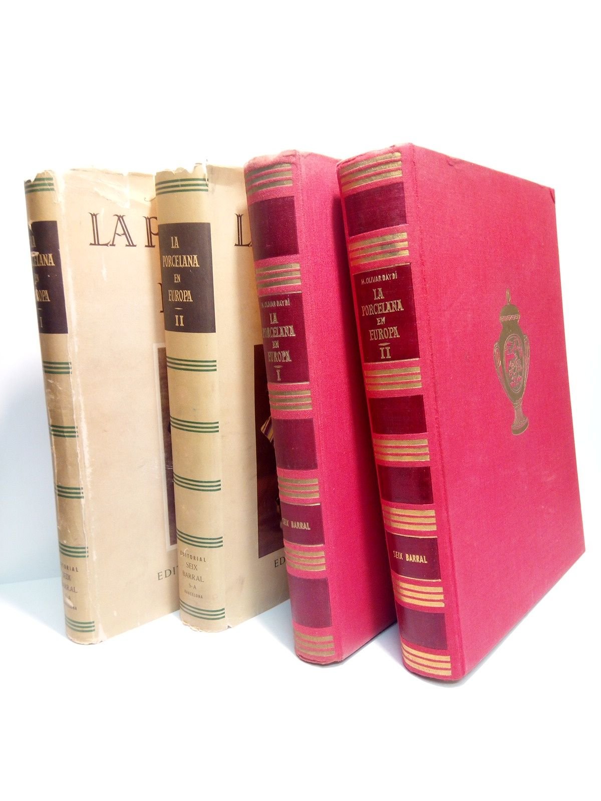 Barcelona: Seix Barral, 1952.- 2 Vols. (365 p. [4 h.]; 420 [3 h.]): Profusión de ilustraciones en negro y a todo color, algunas parcialmente adheridas a modo de cromos; 4º mayor (27,5 x 22 cm); Tela Ed. con camisa ilustrada.- Aparece al final del Vol. 2 un Registro de las principales marcas de porcelanas.* Las camisas fatigadas y con faltas, pero los libros en muy buen estado. Ex-libris de Ruiz Jimenez pegado tras la tapa anterior del tomo II. CERÁMICA Y PORCELANA