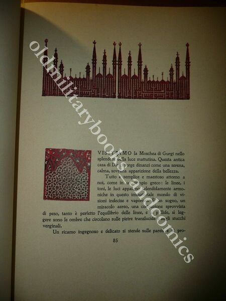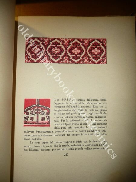 "DESCRIZIONE: Libreria Editrice Minerva Roma 1934 II^ Ed. br. ed., pp. (8) 524, con 22 fototipie e 25 xilografie in tavv.f.t. di M.Gavasci e E.Del Neri. La copertina, le testate e tutte le decorazioni del libro riproducono originali arabeschi tratti da moschee, case tripolitane, vestiti, suppellettili di popolazioni arabe, berbere, tuareg della Tripolitania. I soli capitoli che trattano di antichità classiche e che si riferiscono ai vari aspetti dell'attività italiana sono preceduti da testate a mosaico. Nel volume descrizioni di luoghi e fatti, aspetti della letteratura popolare, superstizioni, usanze, cerimonie, cenni storici e biografie di personaggi. In origine, la regione era abitata dai berberi (e tuttora la lingua berbera è parlata sia sulla costa, a Zuara, sia nel Gebel Nefusa); nel VII secolo a.C. i fenici si stabilirono lungo la costa in colonie che più tardi passarono sotto il controllo dei cartaginesi prima e della Numidia poi (146 a.C.). Un secolo più tardi giunsero i romani, che fecero della Tripolitania un'area molto prospera. Dopo l'occupazione dei vandali, giunti nel 435 d.C., la regione fu incorporata nell'impero bizantino nel VI secolo e presa dagli arabi in quello successivo. Fu poi la volta dei turchi ottomani, che mantennero il controllo dell'area (dove fondarono il "vilayet di Tripoli") dal 1553 al 1911, anno dell'occupazione italiana della Libia in seguito alla Guerra Italo-Turca. Inizialmente, le autorità italiane promisero una certa autonomia alla regione, che, tuttavia, fu dapprima amministrata quale colonia a sé stante (dal 26 giugno 1927 al 3 dicembre 1934) e, poi, unita alla colonia della "Libia". CONDIZIONI: Ottime MANCA SOVRACC. PESO / WEIGHT: 1600 gr. without package"