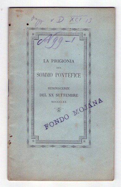 La prigionia del Sommo Pontefice. Reminescenze del XX settembre MDCCCLXX. 1895