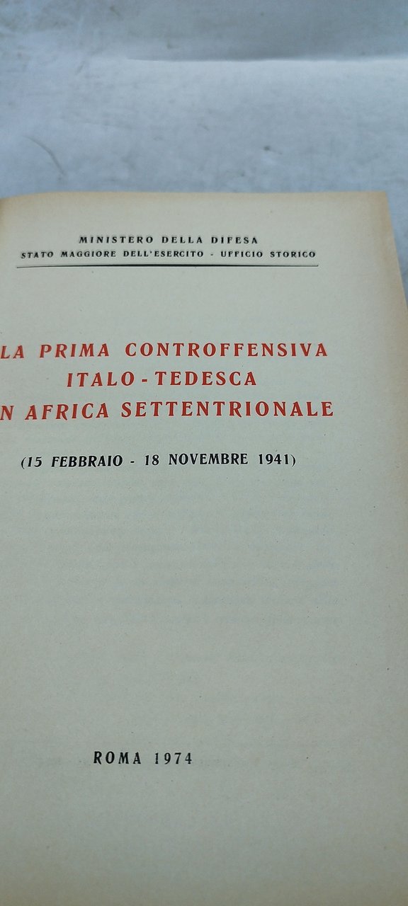 ministero della difesa stato maggiore dell'esercito ufficio storico la prima controffensiva italo -tedesca in africa settentrionale. , italiano, °°rilegato
