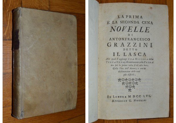 La prima e la seconda cena. Novelle di Antonfrancesco Grazzini detto il Lasca alle quali si aggiunge una Novella della Terza Cena che unitamente colla Prima ora per la prima volta si da alla luce colla vita dell'Autore e con la dichiarazione delle voci più difficili.