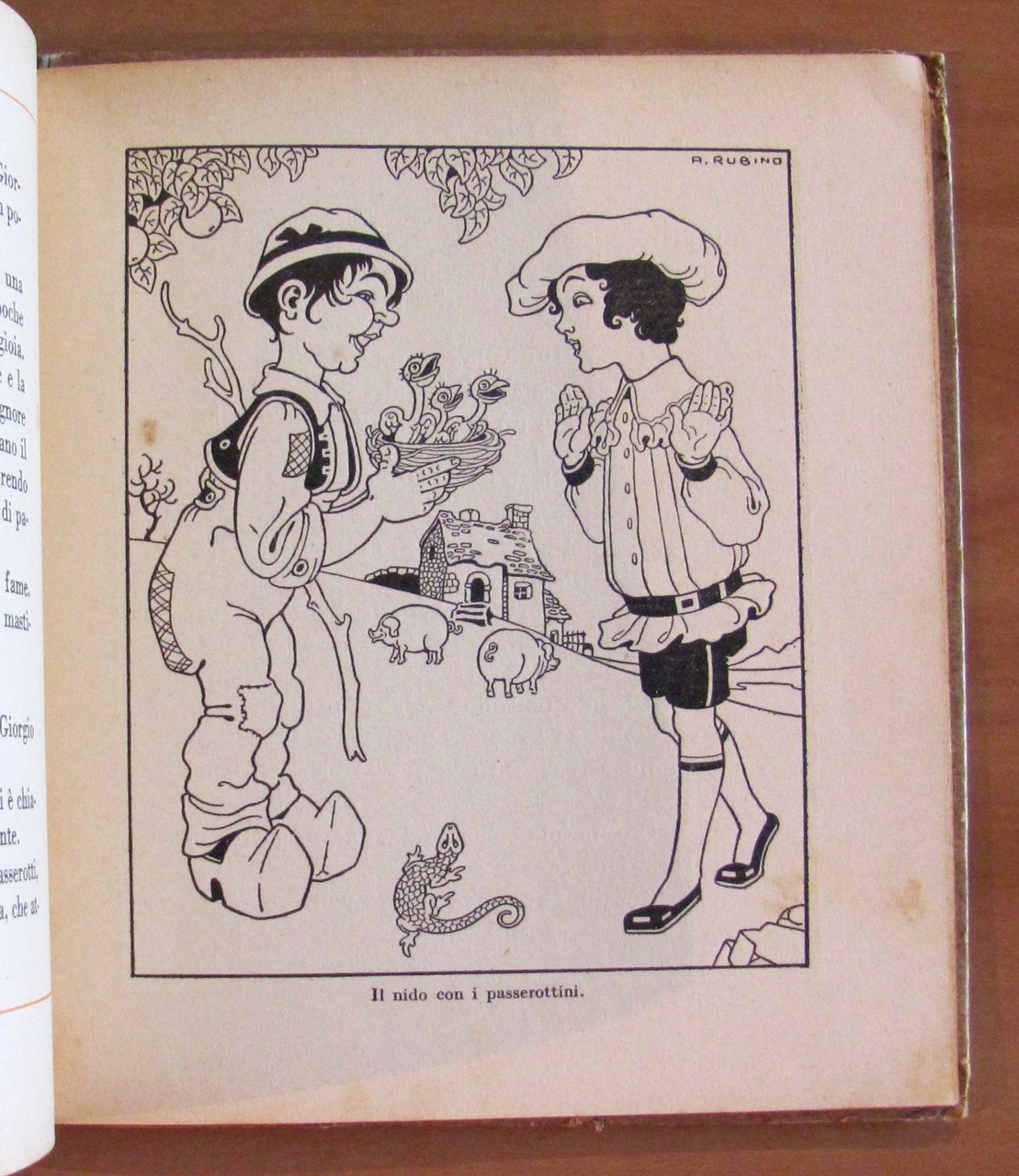 Bibliotechina de "La Lampada" N.6. Copertina e 3 belle illustrazioni in b/n a piena pagina di Rubino. Editrice Mondadori, I edizione 1924. Cartonato editoriale con lievissime tracce del tempo alle copertine e leggera brunitura del dorso. Piccolo timbro di vecchia appartenenza all'occhietto  e al frontespizio. Interno Come Nuovo. 16,5x18,5; pp.82. Raro e in Buonissimo stato. , Molto buono (Very Good)