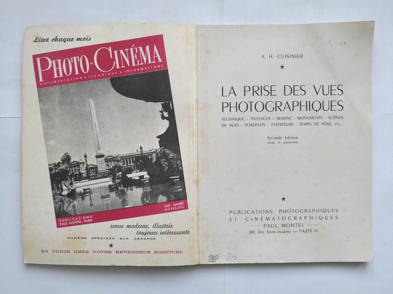LA PRISE DES VUES PHOTOGRAPHIQUES di Cuisinier 1950 Paul Montel libro fotografia
