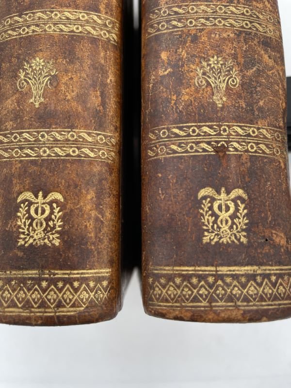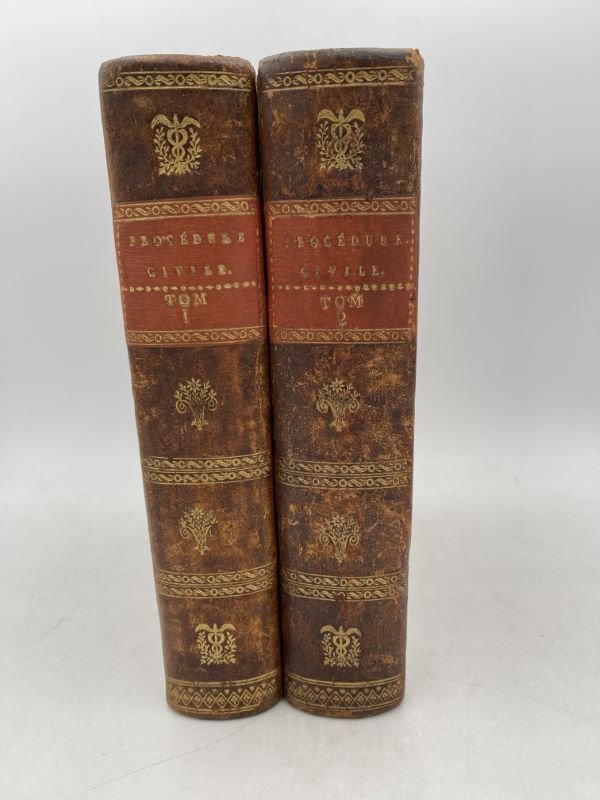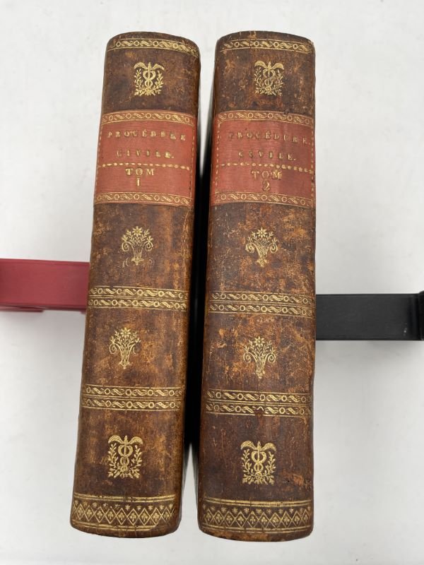 Frères Mame 1807 A Paris, chez Garnery et H. Nicolle, 1807. Imprimerie des Frères Mame. 2 volumes forts In-4 reliés pleine basane brune, dos lisses ornés de guyirlandes et fleurons dorés, dont pour chaque dos deux caducés dorés, pièces de titre rouges. XXXIV + 690 pages + tables + 782 + 94 pages pour "Décret impérial sur la police des tribunaux". Légers frottements à la reliure sans aucune gravité, corps de l'ouvrage en bon état. Très bon exemplaire.