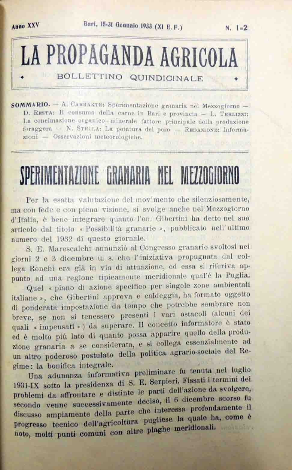 La propaganda agricola, a. XXV, nn. 1-24, gennaio-dicembre 1933