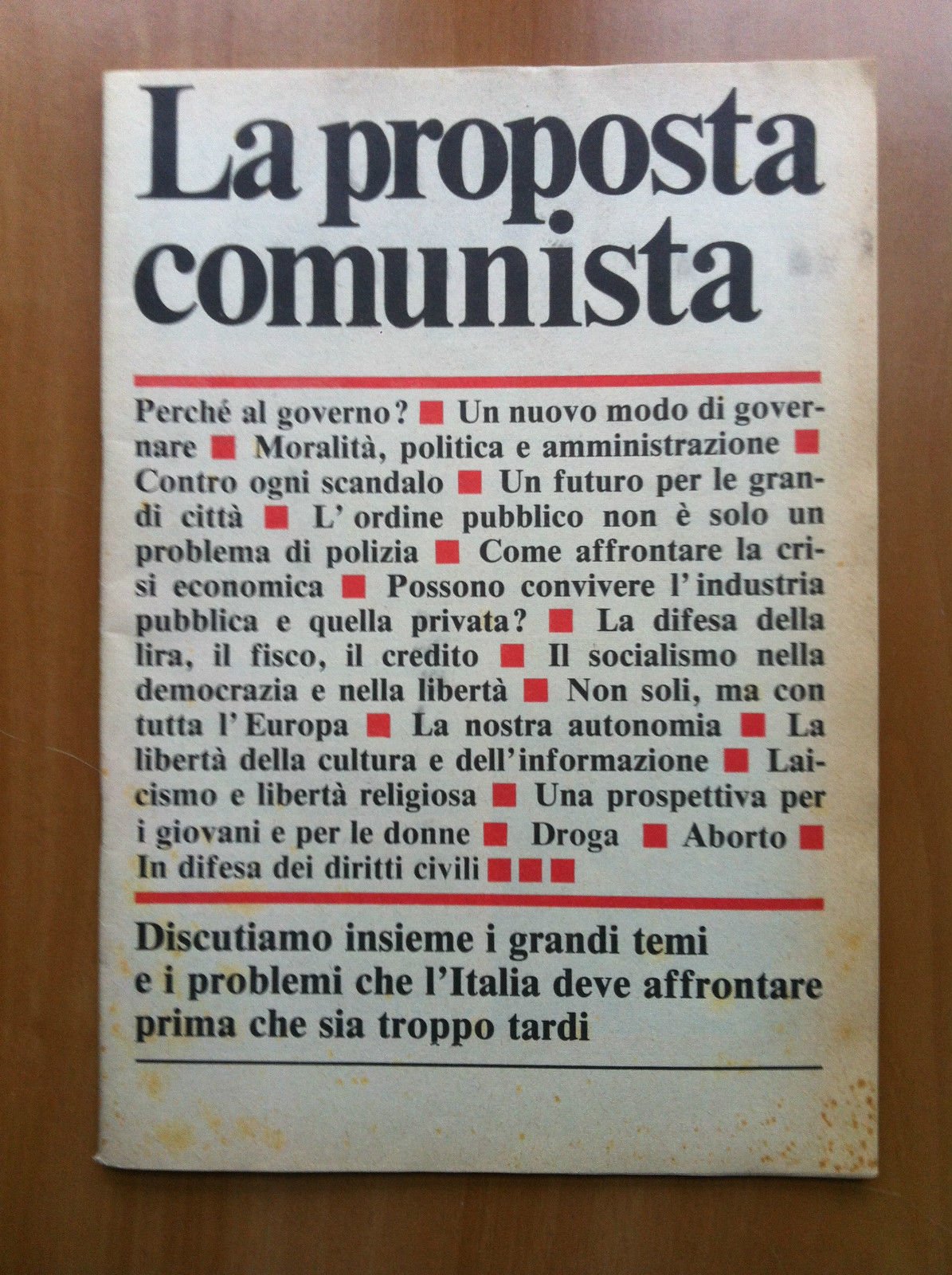 LA PROPOSTA COMUNISTAPTesti di Enrico Berlinguer, Armando Cossutta, Massimo D'Alema, Giorgio Napolitano63 Pagine - formato 19,5x27,5 cmIn ottime condizioni (100 g)E15240