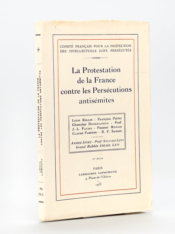• Comité Français Pour La Protection Des Intellectuels Juifs Persé, Cutés, Rollin, Louis, Pietri, François, Desgranges, Chanoine, Faure, Professeur J.-L., Monod, Pasteur, Farrere, Claude, Sanson, R. P., Spire, André, Levi, Prof. Sylvain, Levi, Grand Rabbin Israël