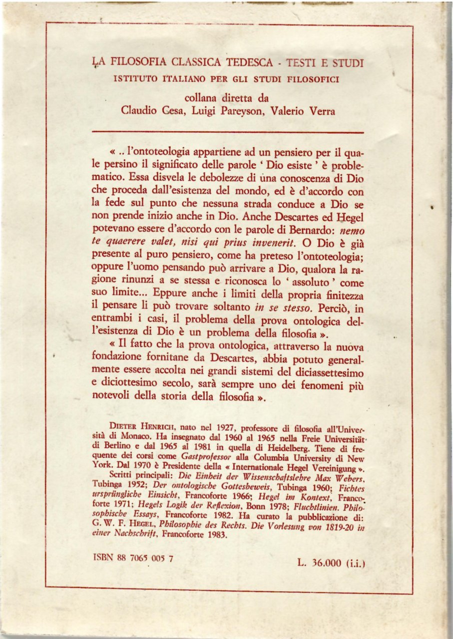 La prova ontologica dell'esistenza di Dio. La sua problematica e la sua storia nell'età moderna