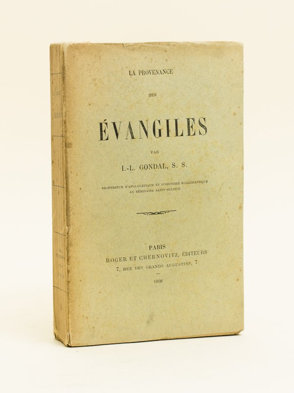 1 vol. in-12 br., Roger et Chernovitz, Paris, 1898, VIII-455 pp. Bon état. Peu commun. L'auteur était un prêtre, professeur d'apologétique et d'histoire au Séminaire Saint-Sulpice (fondé à Paris en 1642 par Jean-Jacques Olier).