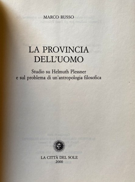 LA PROVINCIA DELL'UOMO. STUDIO SU HELMUTH PLESSNER E SUL PROBLEMA DI UN'ANTROPOLOGIA FILOSOFICA