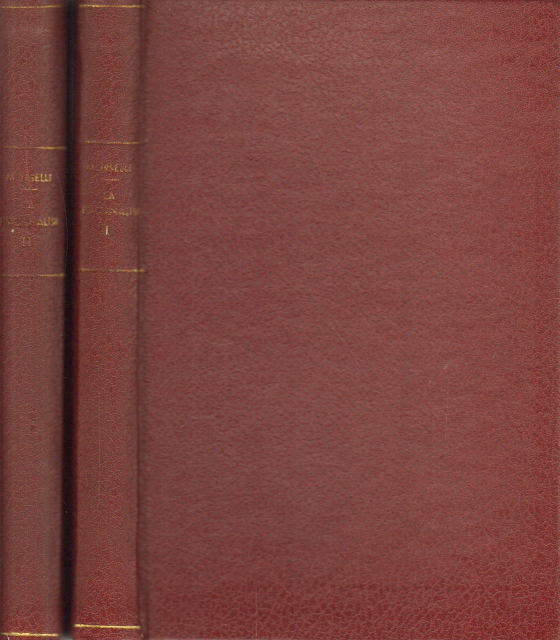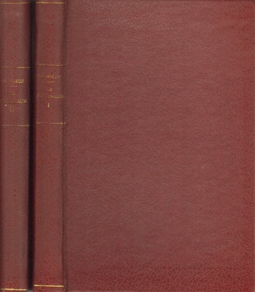 Esemplari in buone condizioni.Le due copie si presentano con copertine rigide rilegate, in similpelle, con scritti scoloriti il titolo e l'autore al dorso delle copertine. Pagine e tagli bruniti con polvere. Entrambe le copie si presentano con la prima pagina di guardia, leggermente incollata al frontespizio.