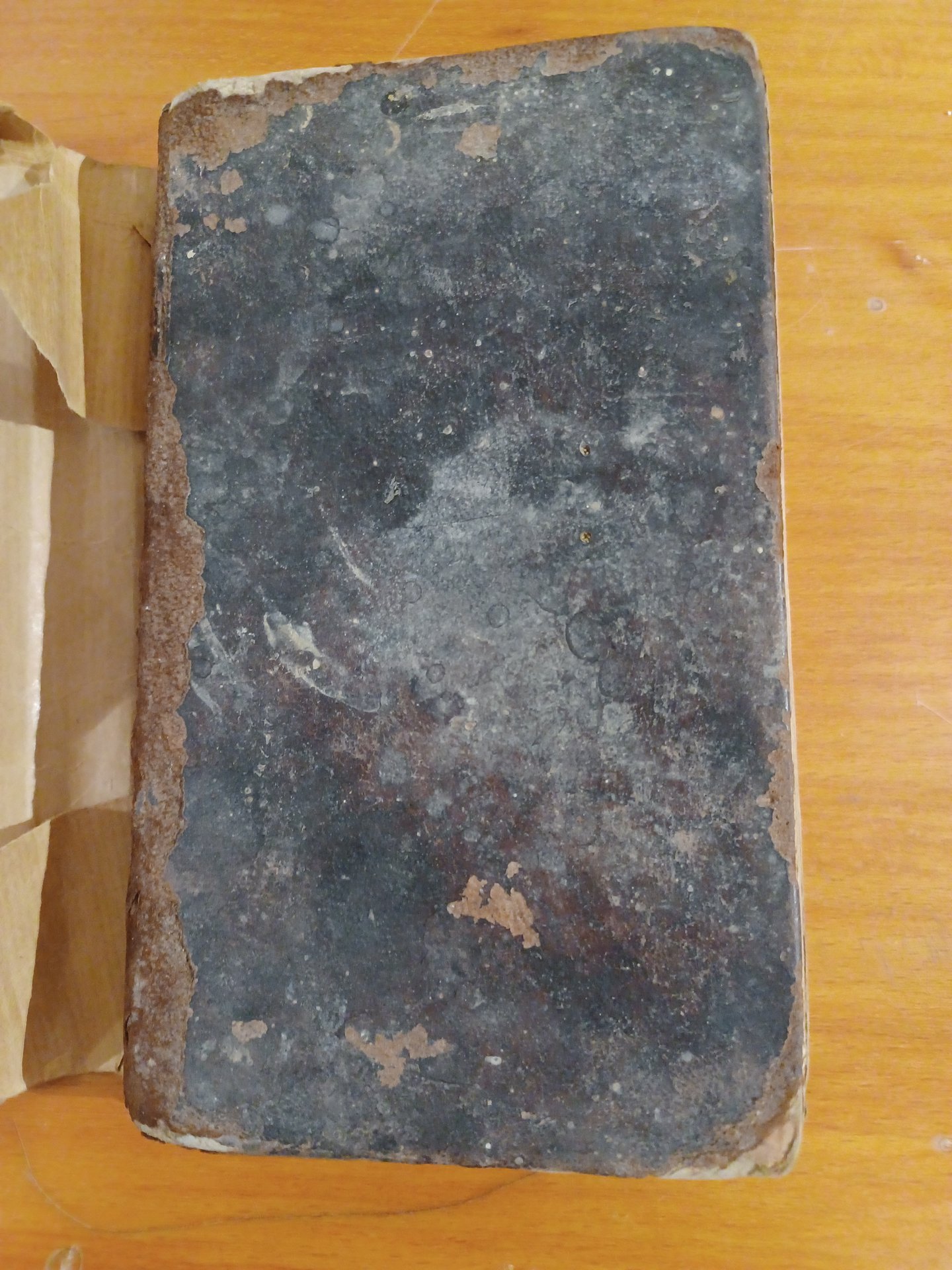 Libro in formato tascabile, pagine con macchie d'umidità. Contine firme