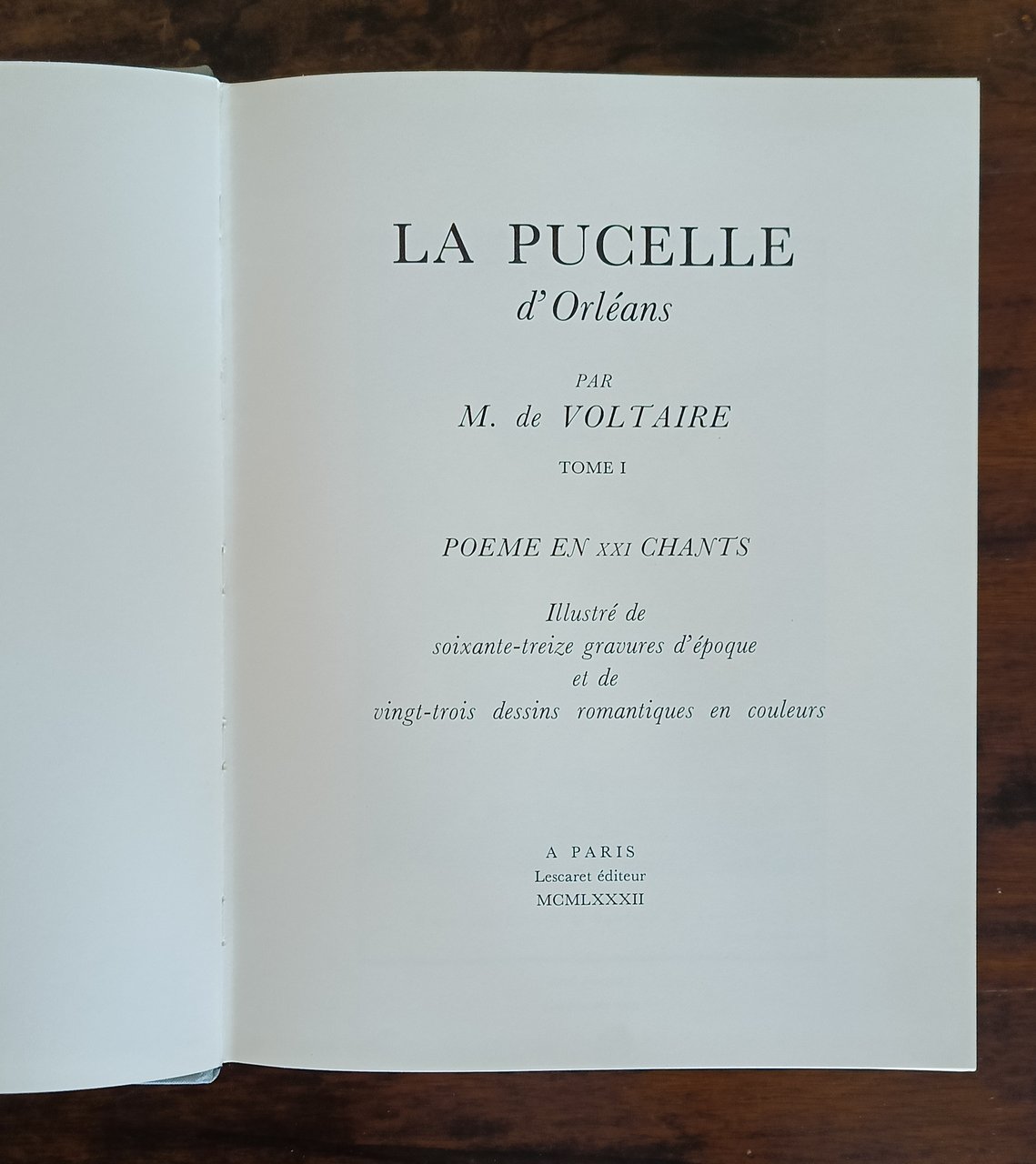 La pucelle d'orléans Poeme en XXI chants Illustré de soixante-treize gravures d'epoque et de vingt-trois dessins romantiques a couleurs