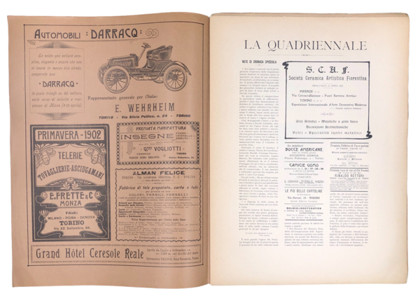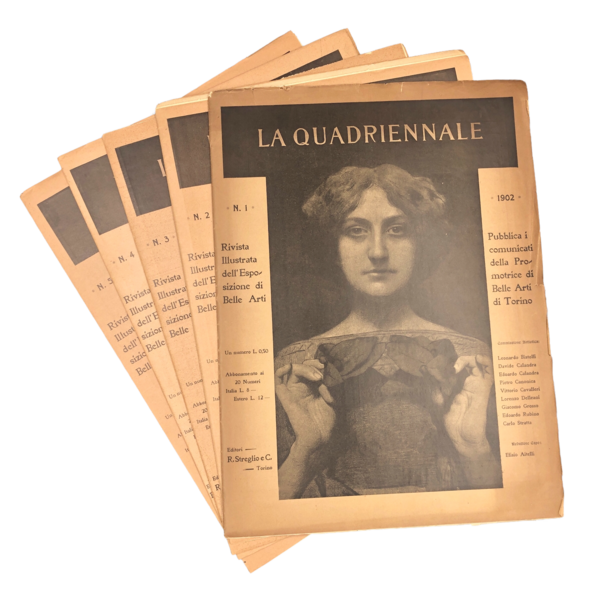 La QUADRIENNALE. Rivista illustrata dell'Esposizione di Belle Arti. Pubblica i comunicati della Promotrice di Belle Arti di Torino. Anno 1°, i primi 20 fascioli, TUTTO IL PUBBLICATO.
