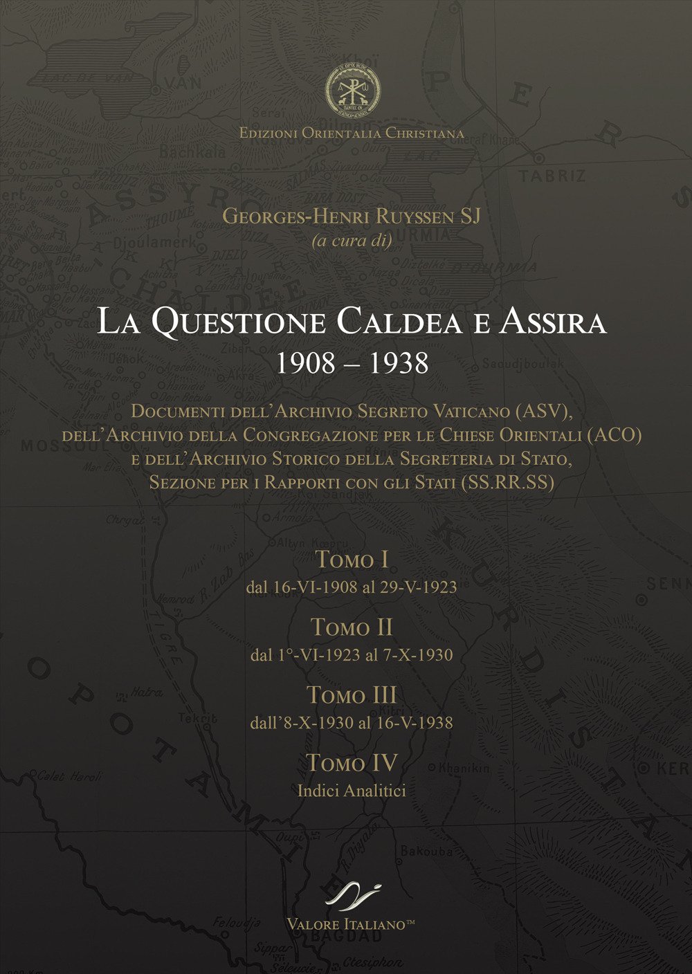 Archivio ASV (Archivio Segreto Vaticano) Archivio ACO (Archivio della Congregazione per le Chiese Orientali) Archivio SS.RR.SS (Archivio Storico della Segreteria di Stato, Sezione per i Rapporti con gli Stati). I quattro volumi de La Questione Caldea e Assira, curati dal Padre Georges-Henri Ruyssen SJ, docente presso il Pontificio Istituto Orientale a Roma, rendono finalmente fruibili i documenti sinora inediti, provenienti dagli Archivi Vaticani, sulla persecuzione dei cristiani caldei e assiri in Medio Oriente. Si tratta nello specifico di documenti redatti dalle autorità ecclesiastiche sulla sorte di queste comunità durante la prima parte del XX secolo, all’interno di eventi che coinvolgono l’Impero ottomano, la Persia, nonché paesi come Turchia, Siria, Iraq e Iran, così come si verranno a costituire subito dopo la fine della Prima Guerra Mondiale.