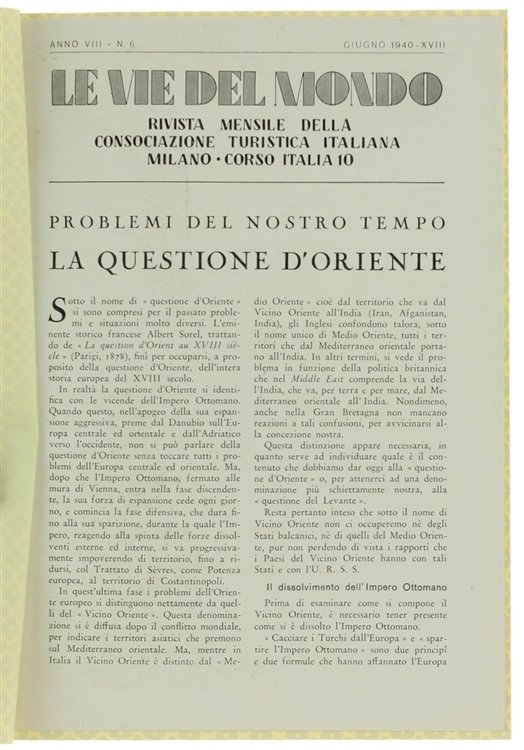 LA QUESTIONE D'ORIENTE. Problemi del nostro tempo.