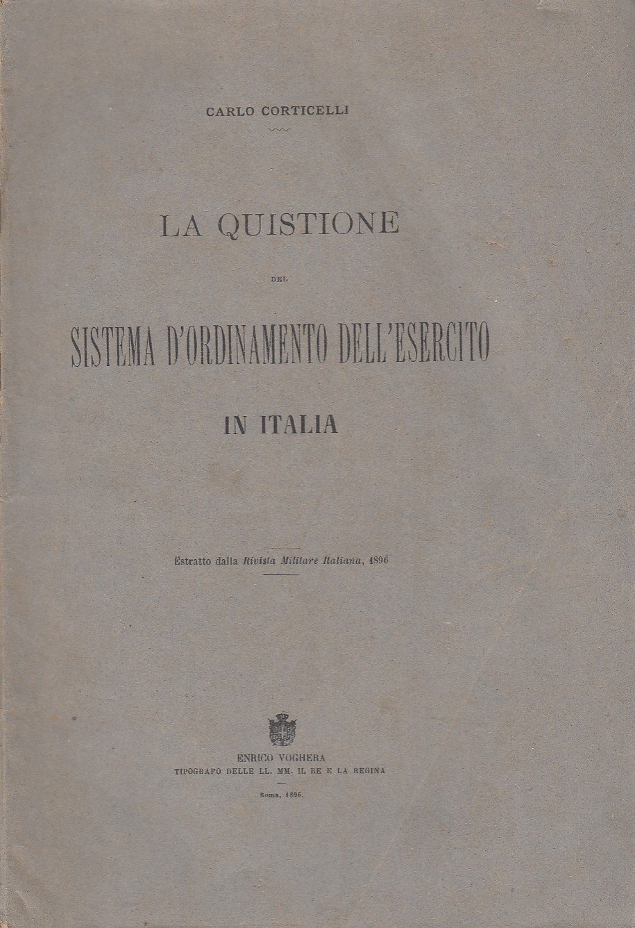 Corticeli Carlo: La quistione del sistema d'ordinamento dell'esercito in Italia. Enrico Voghera, 1896