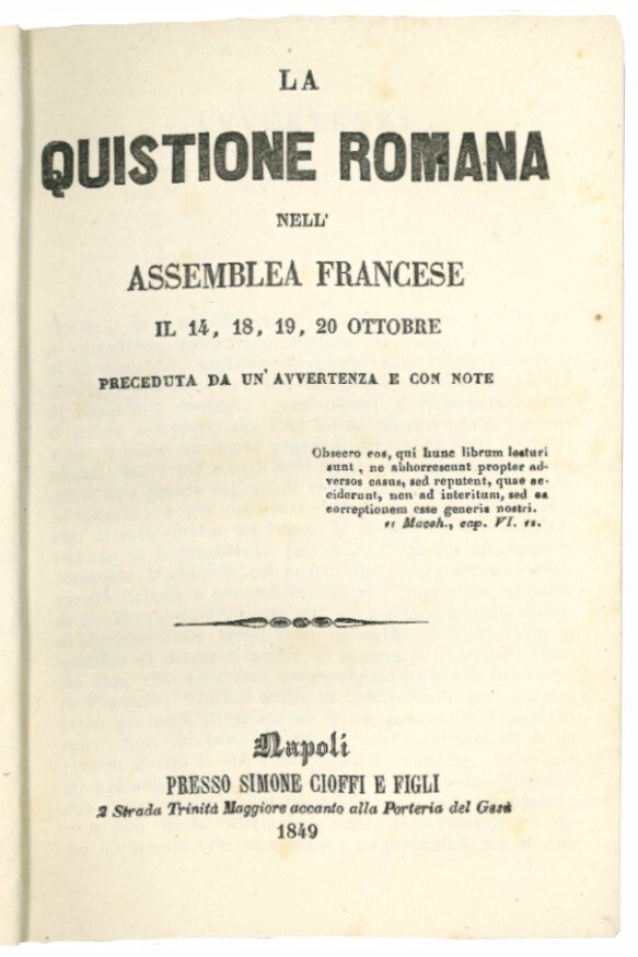 La quistione romana nell'Assemblea Francese il 14, 18, 19, 20 Ottobre. Preceduta da un'avvertenza e con note.