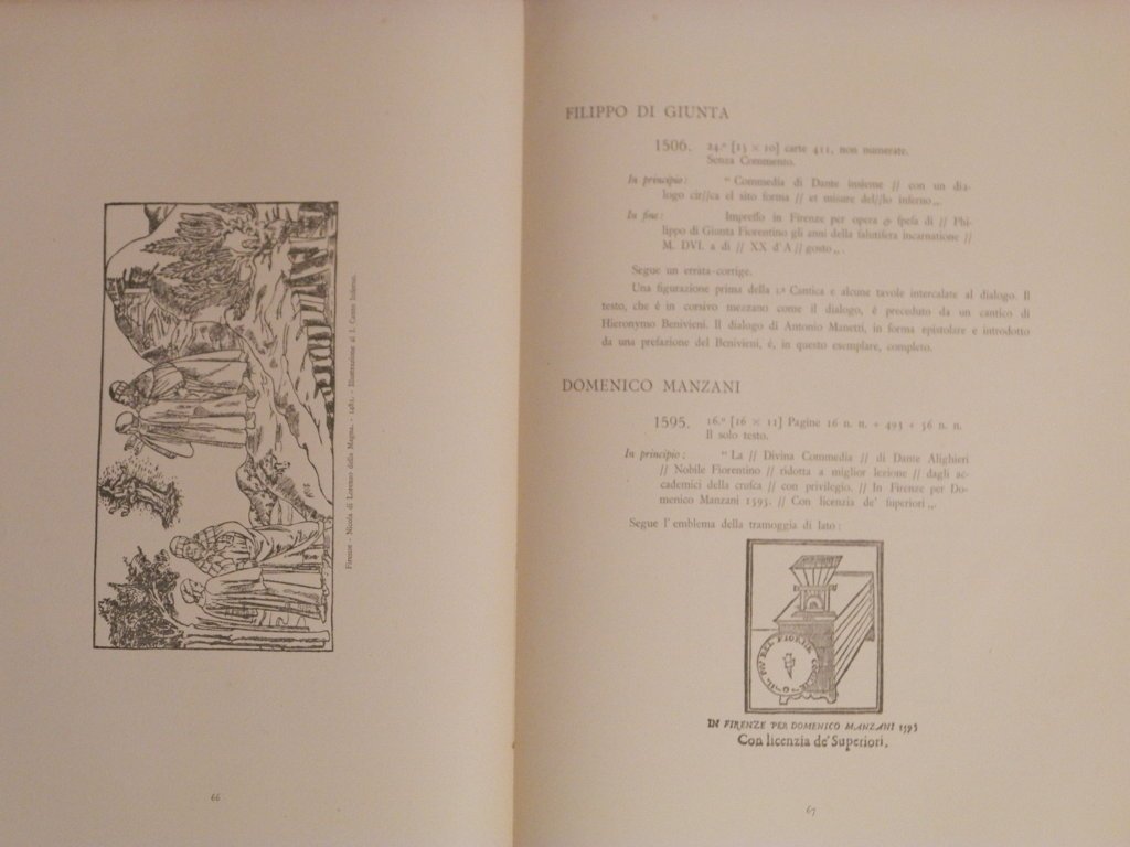 In folio, cm 35, pp. 315, con 3 tavole fuori testo. Brossura editoriale con illustrazione silografica al centro del piatto, titoli al piatto e al dorso. Esemplare con difetti evidenti al dorso, tuttavia solido e nel complesso molto ben conservato. Prefazione di U.L. Morichini. Una delle più fondamentali bibliografie dantesche . *** TUTTI I NOSTRI LIBRI SONO VISIBILI PREVIO CONTATTO MAIL O TELEFONO NELLA NUOVA SEDE DI MILANO: LIBRERIA COSMOPOLIS, VIA JOMMELLI, 22. ***