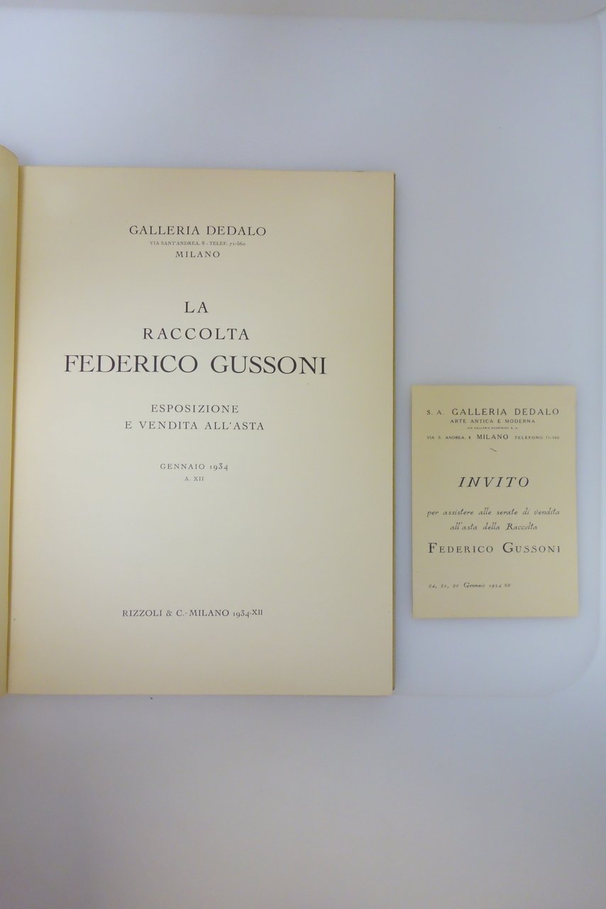 LA RACCOLTA FEDERICO GUSSONI ESPOSIZIONE E VENDITA ALL'ASTA 1934 GALLERIA DEDALO