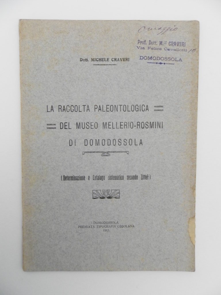 La raccolta paleontologica del Museo Mellerio-Rosmini di Domodossola. (Determinazione e catalogo sistematico secondo Zittel)