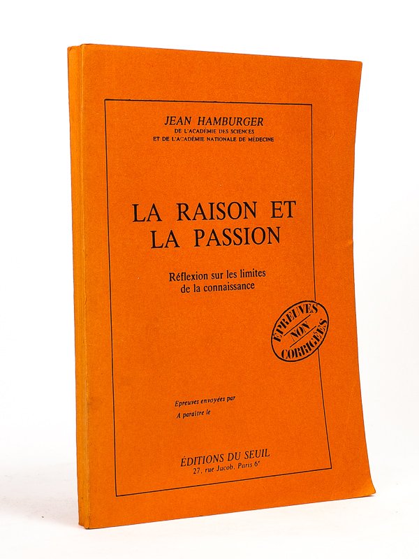 La raison et la passion. Réflexion sur les limites de la connaissance. Epreuves non corrigées.