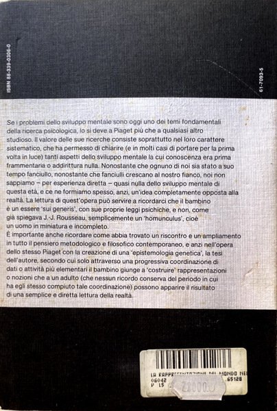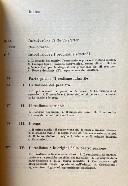 Soggetti: Opera di referenza, Psicologia infantile e dell'età evolutiva, Filosofia, Scienze sociali, Pensiero, Realismo, Sogni, Coscienza, Sviluppo psichico, Classici, Riferimento, Bambini, Sviluppo cognitivo, Quattro Stadi mentali, Das Weltbild des Kindes, Sviluppo intellettuale, Intelligenza, Animismo, Artificialismo, Domande, Partecipazione, Credenze, Immaginazione, Fantasia, Sogni, Salève, Linguaggio, Fanciullo, Comunicazione, Crescita, Edouard Claparède, Epistemologia genetica, Strutturalismo, Studi fondamentali, Principi, Osservazione, Anni Venti, Novecento, Pedagogia, Educazione, Metodo clinico, Analisi, Risultati, Bocca, Sensi, Esperienza, Ambiente sociale, Corpo, Percezione, Mondo esterno, Animali, Genitori, Determinismo fisico, Piante, Vita, Morte, Moto, Movimento, Passi, Morale, Astri, Luna, Acque, Origine, Meteorologia, Cielo, Nubi, Stelle, Lampi, Fenomeni atmosferici, Mare, Tuoni, Fulmini, Neve, Laghi, Fiumi, Alberi, Montagne, Terra, Sassi, Carta, Stoffa, Nascita, Identificazione, Imitazione, Concetti, Sentimenti, Magia, Pratiche magiche, Reazioni, Irrazionalità, Relazioni affettive, Giochi, Adattamento, Animismo, Risposte, Spiegazioni, Immaginario, Adulti, Differenze, Genere, Scelte, Irreversibilità, Primo stadio, Parole, Cose, Oggetti, 8 Anni, Bibliografia, Libri Vintage Fuori catalogo, Baldwin, Pierre Bovet, Delacroix, Inhelder, Hall, Melanie Klein, James, Meyerson, Sigmund Freud, Frazer, Rasmussen, Sully, Wallon, Psicologi svizzeri, Reference work, Child and developmental psychology, Philosophy, Social sciences, Thinking, Realism, Dreams, Consciousness, Psychic development, Classics, Reference, Children, Cognitive development, Four mental stages, Intellectual development, Intelligence, Animism, Artificialism, Questions, Participation, Beliefs, Imagination, Fantasy, Dreams, Language, Child, Communication, Growth, Genetic epistemology, Structuralism, Fundamental studies, Principles, Observation, Twenties, Twentieth century, Pedagogy, Education, Clinical method, Analysis, Results, Mouth, Senses, Experience, Social environment, Body, Perception, External world, Animals, Parents, Physical determinism, Plants, Life, Death, Motion, Movement, Steps, Morale, Stars, Moon, Waters, Origin, Meteorology, Sky, Clouds, Stars, Lightning, Atmospheric phenomena, Sea, Thunder, Lightning, Snow, Lakes, Rivers, Trees, Mountains, Earth, Stones, Paper, Fabric, Birth, Identification, Imitation, Concepts, Feelings, Magic, Reactions, Irrationality, Affective relationships, Games, Adaptation, Animism, Answers, Explanations, Imaginary, Adults, Differences, Gender, Choices, Irreversibility, First stage, Words, Things, Objects, Bibliography, Out of print books, Swiss psychologists