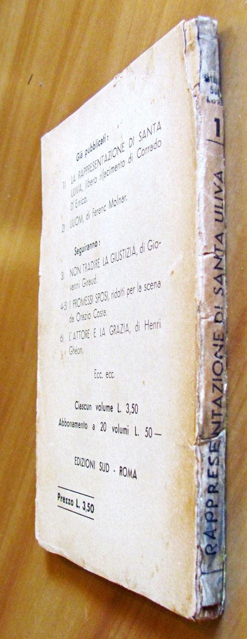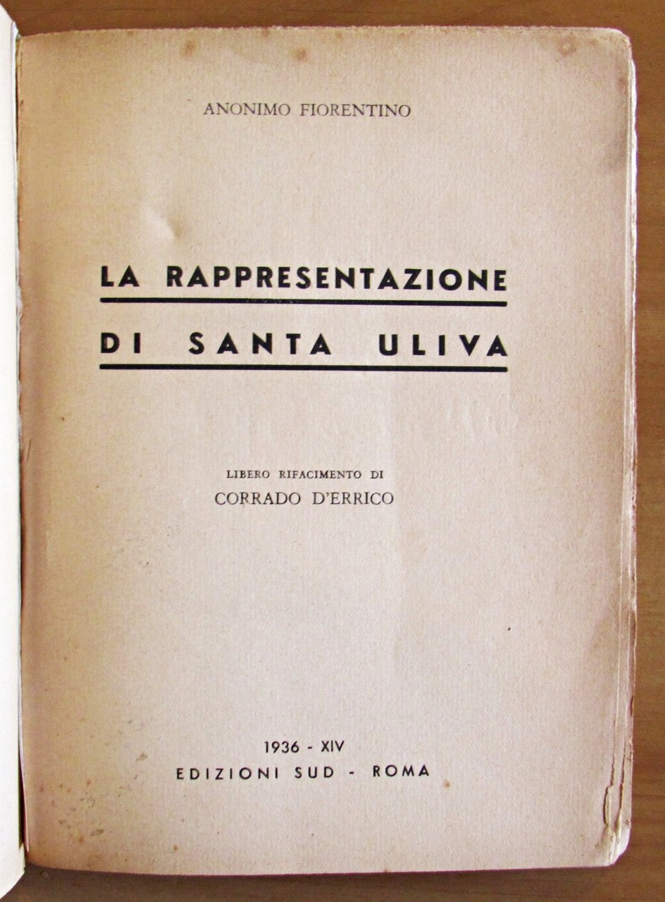 LA RAPPRESENTAZIONE DI SANTA ULIVA - Ed. Sud, 1936 - REPERTORIO Collana Teatrale